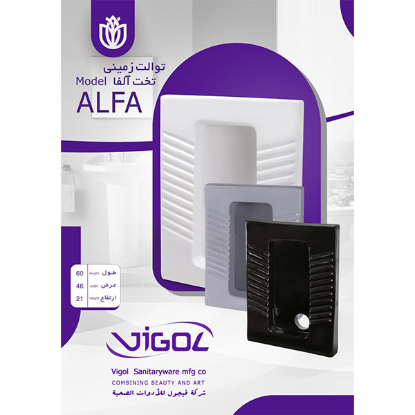 توالت ایرانی ویگل مدل آلفا (ALFA) در سه رنگ سفید، طوسی و مشکی و در سه درجه کیفی 1،2،3 تولید شده است .