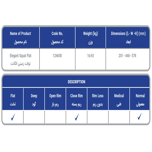 | ابعاد توالت ایرانی | عرض 44.6 طول 57.8 ارتفاع 20.1 |