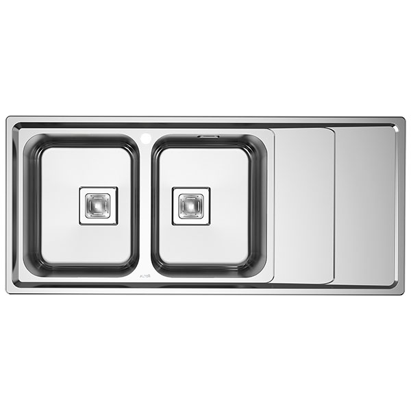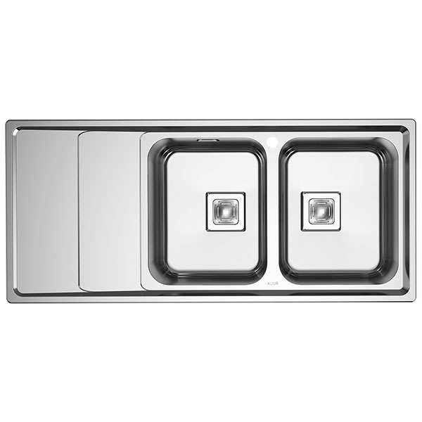 سینک توکار آلتون مدل ST1162 دارای دو لگن و یک سینی است که برای قرار دادن وسایل مناسب خواهد بود. ابعاد سینک 52*116 سانتیمتر است. ضخامت ورق این سینک 0.8 میلیمتر و عمق لگن آن 20 سانتیمتر است. از لوازم جانبی این سینک به پیشبند و تفاله گیر میتوان اشاره کرد. ابعاد برش این سینک 49*113 سانتی متر است.