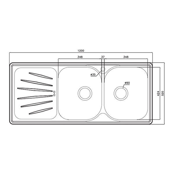 این سینک توکار دارای دو لگن و یک سینی است که برای قرار دادن وسایل مناسب خواهد بود. ابعاد سینک 52*120 سانتیمتر و عمق لگن آن 19 سانتیمتر است. ظرفیت این سینک 50.2 لیتر است و مجهز به عایق صداست. همچنین این محصول دارای تکنیک آببندی است.