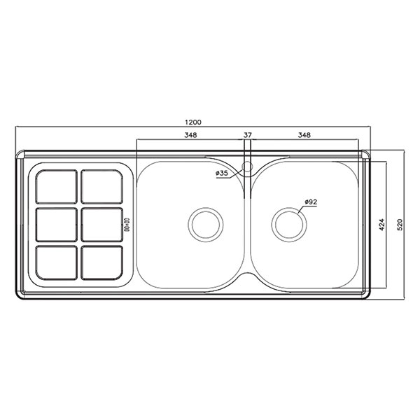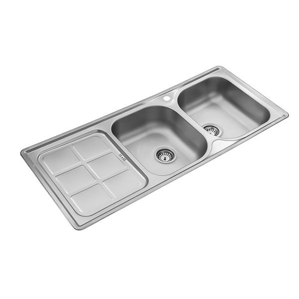 این سینک توکار دارای دو لگن و یک سینی است که برای قرار دادن وسایل مناسب خواهد بود. ابعاد سینک 52*120 سانتیمتر و عمق لگن آن 19 سانتیمتر است. ظرفیت این سینک 50.2 لیتر است و مجهز به عایق صداست. همچنین این محصول دارای تکنیک آببندی است.
