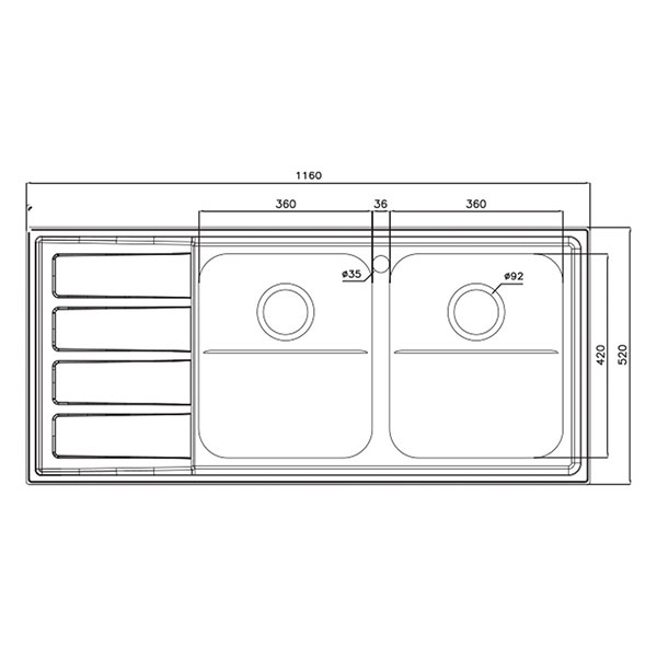 سینک استیل البرز مدل 764 از انواع سینک توکار محسوب میشود و در دسته سینکهای فانتزی قرار میگیرد. جنس بدنه این سینک ظرفشویی استنلس استیل کار شده است. ابعاد سینک 52*116 سانتیمتر و عمق لگن آن 20.5 سانتیمتر است.