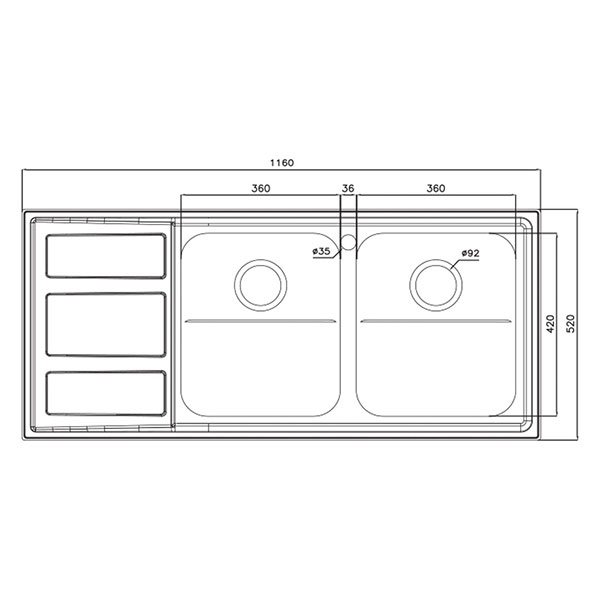 تخته کار آشپزخانه روی لبههای لگن سینک قرار میگیرد و این قابلیت را دارد که سبد میوه شور نیز به آن اضافه شود. ترکیب این دو، باعث افزایش کارایی تخته میشود.