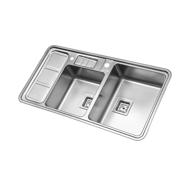 این سینک توکار دارای دو لگن و یک سینی است که برای قرار دادن وسایل مناسب خواهد بود. ابعاد سینک 52*100سانتیمتر و عمق لگن آن 18 سانتیمتر است. ظرفیت این سینک 47.5 لیتر است و مجهز به عایق صداست. همچنین این محصول دارای تکنیک آببندی است. از لوازم جانبی این سینک میتوان به سبد میوهشور و تخته کار اشاره کرد.