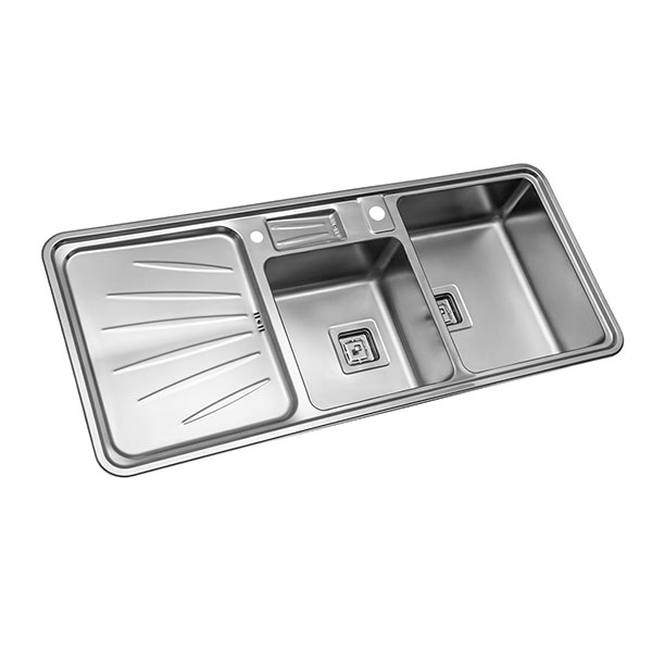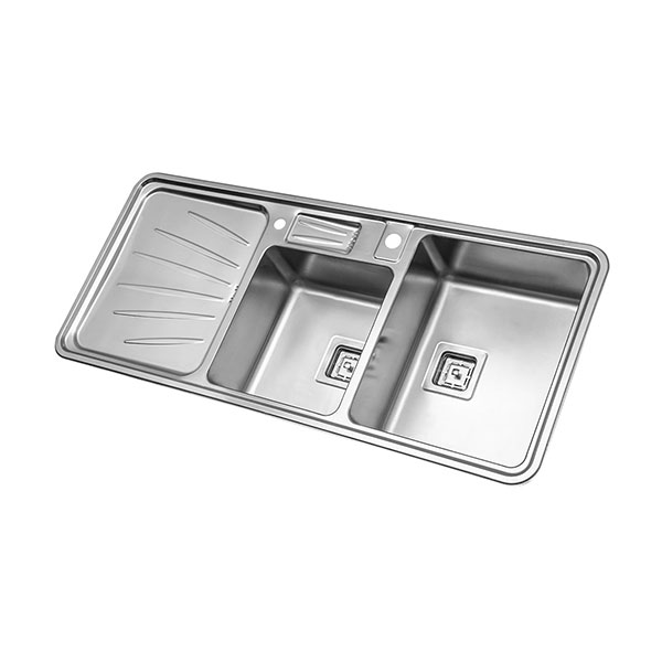 این سینک توکار دارای دو لگن و یک سینی است که برای قرار دادن وسایل مناسب خواهد بود. ابعاد سینک 52*120 سانتیمتر و عمق لگن آن 18 سانتیمتر است. ظرفیت این سینک 47.5 لیتر است و مجهز به عایق صداست. همچنین این محصول دارای تکنیک آببندی است. از لوازم جانبی این سینک میتوان به سبد میوهشور و تخته کار اشاره کرد.