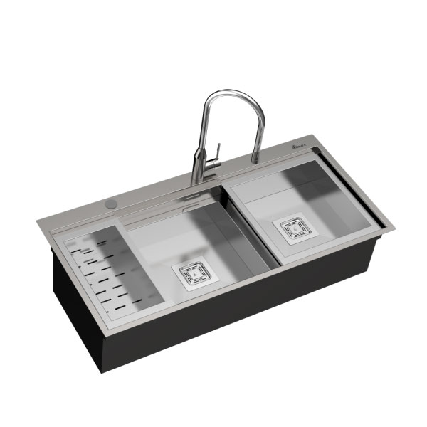 سینک توکار 774 دارای یک لگن بسیار بزرگ به همراه میوه شور و سبد متحرک است که برای قرار دادن وسایل مناسب خواهد بود. ابعاد سینک 50*104 سانتیمتر است. ضخامت ورق این سینک یک میلیمتر و عمق لگن آن 25 سانتیمتر است. همچنین این محصول مجهز به آبچکان رولی، جا مایع، تخته گوشت چوبی و سیفون کامل مربعی است.