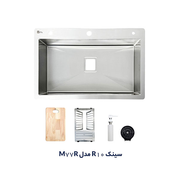 سینک توکار متا مدل M77RD دارای یک لگن است. ابعاد سینک 50*77 سانتیمتر و عمق لگن آن 22 سانتیمتر است. قبل از خرید سینک باید به فضای نصب آن توجه داشت و سینکی با ابعاد متناسب خریداری نمود. ضخامت ورق این سینک 1.2 میلیمتر است که البته لبه های سینک با دقت ویژه و ضخامت 2 میلی متر کار شده است. این محصول دارای جامایع متصل بر روی سینک، لیوان شور،تخته گوشت و آبچکان توکار است. این محصول با طراحی خاص و گوشههای کرو با شعاع 10 درجه، تجربهای متفاوت از نظافت و زیبایی را به آشپزخانه شما میآورد.