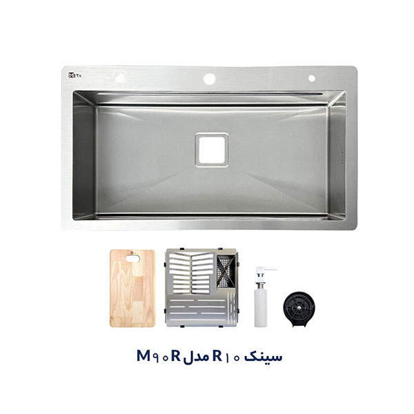 سینک توکار متا مدل M90R دارای یک لگن است. ابعاد سینک 50*90 سانتیمتر و عمق لگن آن 22 سانتیمتر است. قبل از خرید سینک باید به فضای نصب آن توجه داشت و سینکی با ابعاد متناسب خریداری نمود. ضخامت ورق این سینک 1 میلیمتر است که البته لبه های سینک با دقت ویژه و ضخامت 2 میلی متر کار شده است. این محصول دارای جامایع متصل بر روی سینک، لیوان شور،تخته گوشت و آبچکان توکار است. این محصول با طراحی خاص و گوشههای کرو با شعاع 10 درجه، تجربهای متفاوت از نظافت و زیبایی را به آشپزخانه شما میآورد.