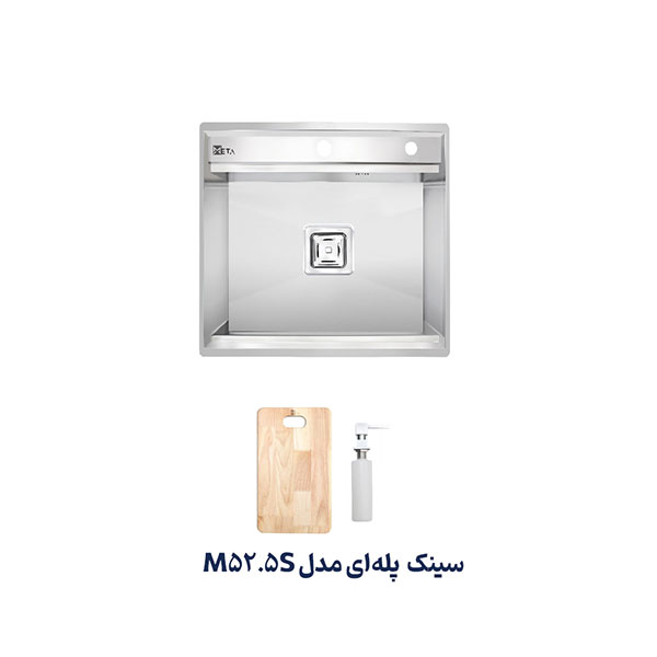 سینک توکار پله دار متا مدل M52.5S دارای یک لگن است. ابعاد سینک 50*52.5 سانتیمتر و عمق لگن آن 25 سانتیمتر است. قبل از خرید سینک باید به فضای نصب آن توجه داشت و سینکی با ابعاد متناسب خریداری نمود. ضخامت ورق این سینک 1.2 میلیمتر است. این محصول دارای جامایع متصل بر روی سینک و تخته گوشت است.