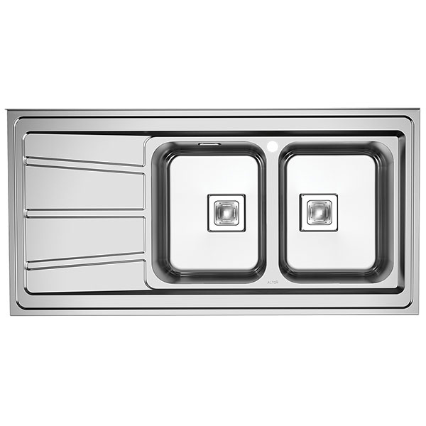 سینک روکار آلتون مدل SR1201 دارای دو لگن و یک سینی است که برای قرار دادن وسایل مناسب خواهد بود. ابعاد سینک 60*120 سانتیمتر است. ضخامت ورق این سینک 0.8 میلیمتر و عمق لگن آن 20 سانتیمتر است. از لوازم جانبی این سینک به پیشبند و تفاله گیر میتوان اشاره کرد.