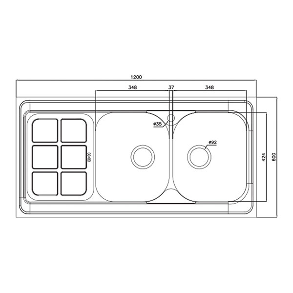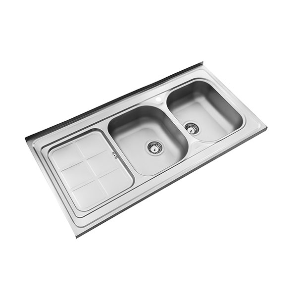 این سینک روکار دارای دو لگن و یک سینی است که برای قرار دادن وسایل مناسب خواهد بود. ابعاد سینک 60*120 سانتیمتر و عمق لگن آن 19 سانتیمتر است. ظرفیت این سینک 50.2 لیتر است و مجهز به عایق صداست.