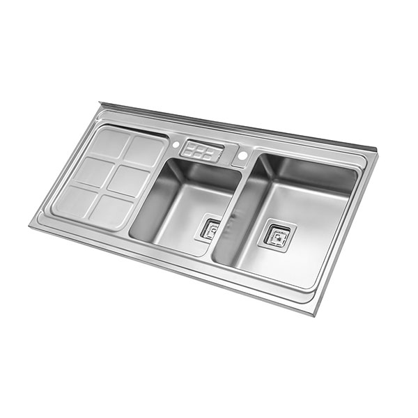 این سینک روکار دارای دو لگن و یک سینی است که برای قرار دادن وسایل مناسب خواهد بود. ابعاد سینک 60*120 سانتیمتر و عمق لگن آن 18 سانتیمتر است. ظرفیت این سینک 47.5 لیتر است و مجهز به عایق صداست. از لوازم جانبی این سینک میتوان به سبد میوهشور و تخته کار اشاره کرد.