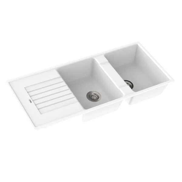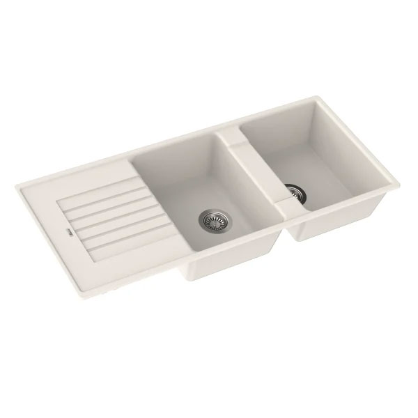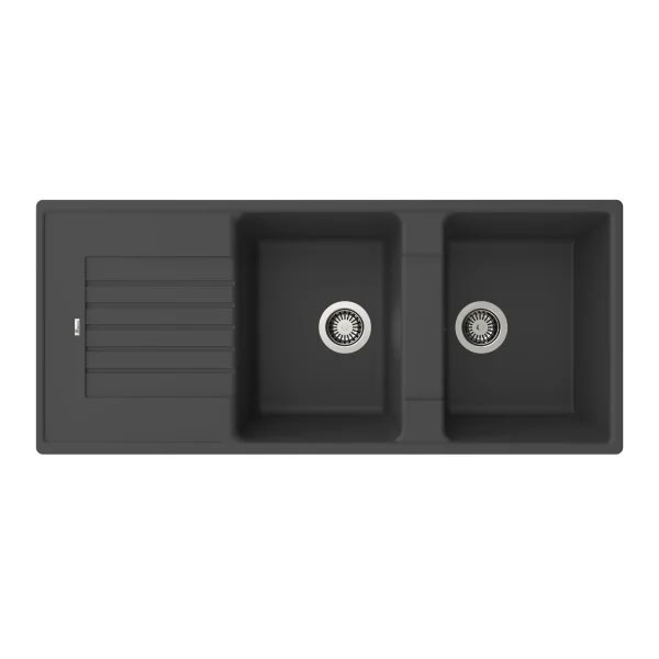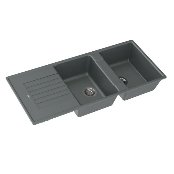 سینک گرانیتی بیمکث مدل 4602 دارای دو لگن و یک سینی میباشد، عمق لگن های این مدل 22 سانت و ابعاد سینک 495*1150 میلی متر است.
