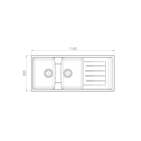 سینک گرانیتی کن مدل الیت ELIT دارای دو لگن و یک سینی میباشد، عمق لگن های این مدل 19 سانت و ابعاد سینک 500*1160 میلی متر است.
