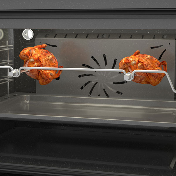 این محصول برقی، با استفاده از المنت های حرارتی گرمایش مورد نظر را ایجاد می کند. این محصول از نظر مصرف برق نمره A داشته و بهینه ترین حالت مصرف برق را دارد. آپشن های مختلفی نظیر فن کانوکشن، گریل، جوجه گردان دو عدد و لعاب داخلی ایزی کلین در این مدل ارائه می شود. امکانات دیگری مانند قابلیت برنامه ریزی پخت و قفل کودک بر روی این محصول وجود دارد و همچنین حسگر پخت گوشت که دستیار شما در پخت بوده و میتوانید با خیالی راحت به پخت و پز مشغول شوید. پیشرفتی که این فر نسبت به نسل قبل خود دارد این است که قابلیت بخار پز کردن غذا و 17 برنامه پخت را به شما میدهد.