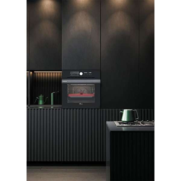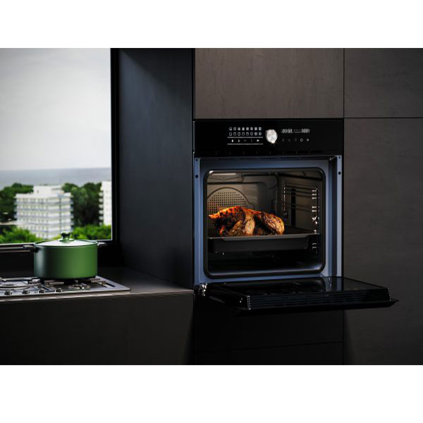 فر برقی توکار بیمکث مدل 3104 برقی است و جزو فرهای توکار می باشد و از سری CHEF X بیمکث محسوب میشود که این سری مزیت هایی نسبت به فرهای دیگر بیمکث دارد که در ادامه توضیح خواهیم داد. نمای ظاهری این فر شیشه سکوریت مشکی کار شده است. ظرفیت این فر 80 لیتر است. ابعاد این فر برقی 57*59*59 سانتیمتر است و دارای 16 برنامه پخت است. به کمک این قابلیت میتوانید برخی از کارها مانند پخت ماهی، گریل، طبخ گوشت و …. را طبق برنامه پیش فرض فر به صورت اتوماتیک انجام دهید. از مزیت های سری CHEF X نسبت به رقبا میتوان به تکنولوژی پخت هوا پز و قابلیت پخت بخار پز با ظرف مخصوص آن را نام برد که شما را از داشتن هوا پز و بخار پز به صورت جداگانه بی نیاز میکند. از مزیت های این سری میتوان به دارا بودن با کیفیت ترین محفظه لعابی یکپارچه فر در ایران، نور پردازی سه بعدی که شما میتوانید بدون نیاز به باز کردن درب فر داخل آن را کامل ببینید، فن خنک کننده دو کاناله که باعث افزایش طول عمر فر میشود، عدم انتقال دمای محفظه به شیشه بیرونی به علت چهار جداره بودن درب. از دیگر ویژگیهای این فر میتوان به سه نوع پخت تاخیری، ترکیبی و سریع اشاره کرد. قفل کودک، تایمر و جوجه گردان نیز جزو امکانات جدید آن میباشد. همچنین این محصول دارای 4 طبقه پخت، صفحه کلید لمسی، میت پراب، دو عدد سینی، ریل تلسکوپی، برنامه یخ زدایی، کلید ایمنی حرارتی خودکار و درب چهارجداره آرام بند است.