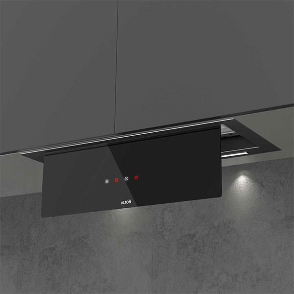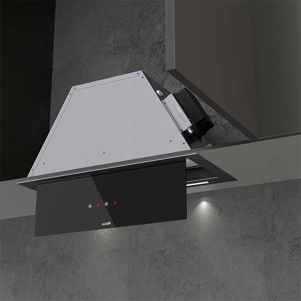 هود آلتون مدل H600BN از انواع هود مخفی (توکار)به شمار میرود. روش نصب این نوع هود به گونهای است که داخل کابینت و در بالای اجاق گاز نصب میشود. نمای ظاهری هود شیشه مشکی کار شده است.