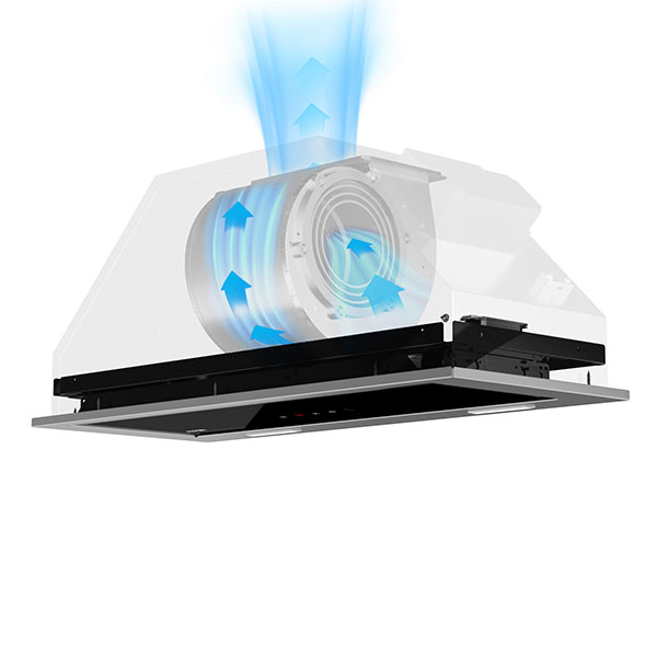 نوع موتور این هود فلزی 5 دور توربو است. قدرت مکش این محصول 900 متر مکعب بر ساعت است. هر چه قدرت مکش موتور بیشتر باشد، قادر به جذب مترمکعب بیشتری از ذرات موجود در هوا خواهد بود. این هود قابلیت فرمان با حرکت دست (موشن) دارد.