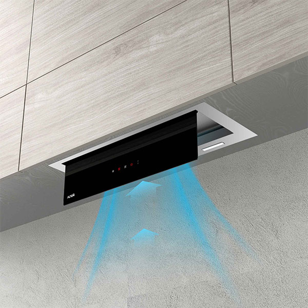 هود آلتون مدل H700S از انواع هود مخفی (توکار)به شمار میرود. روش نصب این نوع هود به گونهای است که داخل کابینت و در بالای اجاق گاز نصب میشود. نمای ظاهری هود شیشه مشکی دور استیل کار شده است.