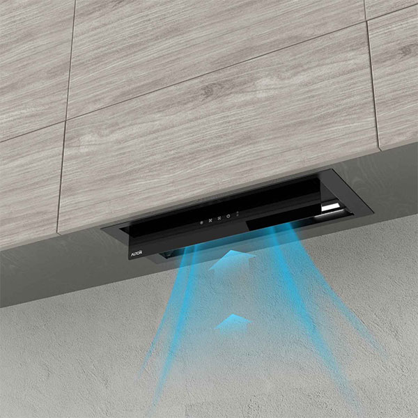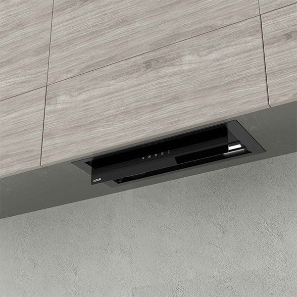 هود آلتون مدل H701BN از انواع هود مخفی (توکار)به شمار میرود. روش نصب این نوع هود به گونهای است که داخل کابینت و در بالای اجاق گاز نصب میشود. نمای ظاهری هود شیشه مشکی کار شده است.