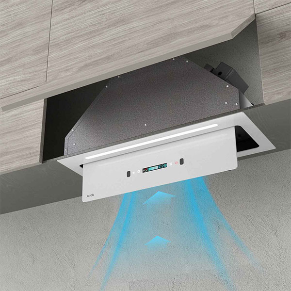 هود آلتون مدل H710W از انواع هود مخفی (توکار)به شمار میرود. روش نصب این نوع هود به گونهای است که داخل کابینت و در بالای اجاق گاز نصب میشود. نمای ظاهری هود شیشه سفید کار شده است.