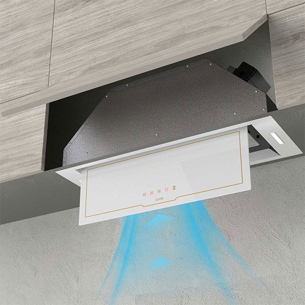 هود آلتون مدل H804WN از انواع هود مخفی (توکار) به شمار میرود. روش نصب این نوع هود به گونهای است که داخل کابینت و در بالای اجاق گاز نصب میشود. نمای ظاهری هود شیشه سفید با دور خط طلایی کار شده است.