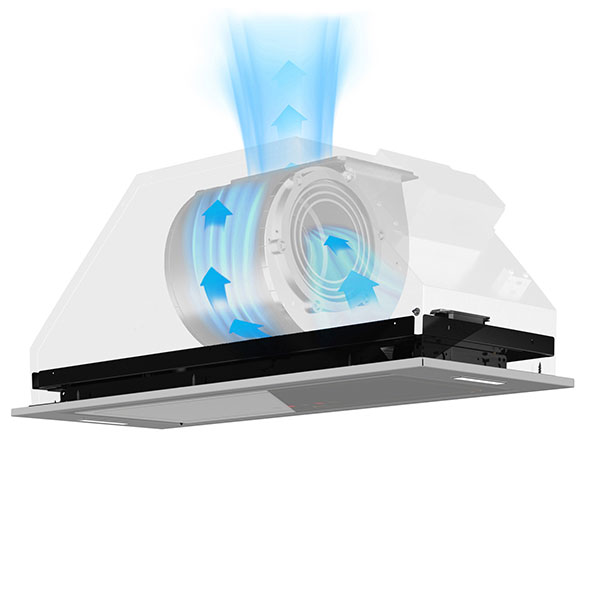 نوع موتور این هود فلزی 4 دور توربو است. قدرت مکش این محصول 900 متر مکعب بر ساعت است. هر چه قدرت مکش موتور بیشتر باشد، قادر به جذب مترمکعب بیشتری از ذرات موجود در هوا خواهد بود. این هود قابلیت فرمان با قابلیت حرکت دست (موشن) دارد.