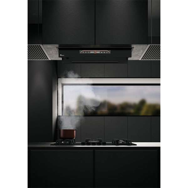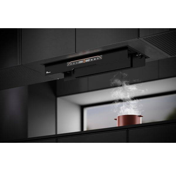 هود بیمکث مدل 1105 از انواع هود مخفی (توکار) محسوب میشود. بدنه این هود آشپزخانه با شیشه سکوریت مشکی با طراحی خاص و مدرن کار شده است. این مدل هود دارای موتور BLDC جدیدترین نسل موتورهای هود می باشد. ابعاد این هود مخفی 70 سانتیمتر و قدرت مکش آن 900 متر مکعب بر ساعت است. همچنین این هود دارای فیلتر بافل قابل شستوشو است. میزان صدایی که این هود ایجاد میکند 52 تا 68 دسی بل بوده و برای نورپردازی آن از دو عدد لامپ خطی کم مصرف 3 وات استفاده شده است. این هود مجهز به صفحه نمایشگر رنگی، کلید تاچ لس (اشاره دست)، سنسور دود، ترموگارد،تایمر متغیر و ریموت کنترل است. این هود فوق العاده کم صداست. این هود از جدیدترین نسل موتور های هود بهره میبرد و امکانات ویژه ای چون درب لولایی لپتاپی، اتصال به بلوتوس که دستیار صوتی شما در آشپزخانه میباشد. ابعاد برش این محصول 28*68 سانتی متر است و ارتفاع هود 34 سانتی متر است. استفاده از فیلترهای بافلی موجب میشود که صدای هود کمتر شده و کثیفی کمتر جلوی مکش هود را بگیرد.