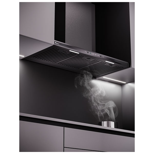 هودی که در تصویر ملاحظه میکنید هود بیمکث مدل 1301 است .این هود دارای دو رنگ است، در رنگ مشکی بدنه فولادی با شیشه سکوریت و در رنگ استیل، بدنه استیل با شیشه سکوریت است. از ویژگیهای قابل ملاحظه این مدل موتور چهار دور توربو است معمولا هودها دارای کلیدهایی می باشند که قدرت دور موتور را می توانند افزایش و یا کاهش دهند که در این هود به صورت لمسی و ریموت کنترل قابل تنظیم است. قدرت مکش هود 650 متر مکعب بر ساعت است. همچنین دارای سه عدد فیلتر بافل قابل شستوشو است.مهمترین ویژگی هود بیمکث مدل 1301 دارا بودن فیلترهای بافل است که این فیلترها بخار و چربی را در خود نگه میدارند و از بسته شدن محل مکش جلوگیری میکنند و از زیاد شدن صدای هود و کم شدن مکش جلوگیری میکند. همچنین این فیلتر ها قابل شستشو در ماشین ظرفشویی نیز هستند. ابعاد این هود استاندارد و 90 سانتیمتر است و مناسب برای اجاق گازهایی است که ابعاد کوچکتر و تعداد شعله کمتری دارند.به طور معمول هود آشپزخانه باید حداقل هم عرض اجاق گاز و در بهترین حالت 3 اینچ بزرگتر از آن باشد تا تمام سطح اجاق شما را کاملا پوشش دهد.هنگام انتخاب بهتر است ، در ذهن فضای آشپزخانهتان را تصویرسازی کنید تا به گزینه مناسب برای خرید برسید.