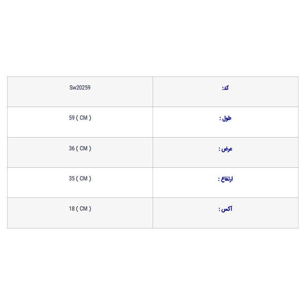 طول این محصول 59، ارتفاع 35 و پهنای آن 36 سانتی متر میباشد که نقشه فنی محصول را میتوانید در عکس های موجود مشاهده نمایید.