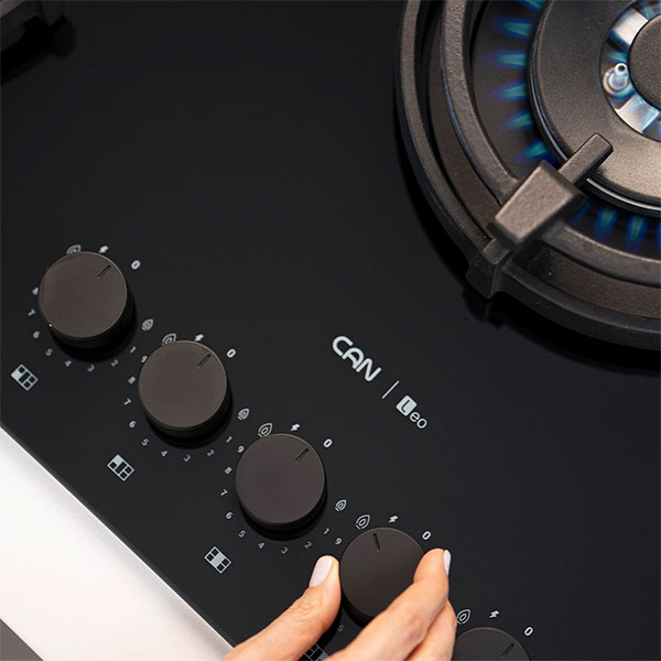 گاز رومیزی کن مدل لئو (LEO) دارای 5 شعله بوده و شعله پلوپز آن در وسط قرار گرفته است. نمای اجاق گاز شیشه مشکی کار شده است. ابعاد آن 52*91 سانتیمتر است. سرشعله این اجاق گاز رومیزی ساخت ساباف ایتالیا است.